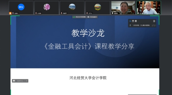 2023年5月15日晚,由教学评估与教师教学发展中心主办、yl7703永利承办的本学期第六期教学沙龙活动在腾讯会议顺利开展。yl7703永利王云鹏老师主讲的教学沙龙主题是《金融工具会计》课程教学分享。yl7703永利30余名教师参加,副经理杨国莉主持沙龙。