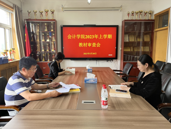 本次教材审查会对2023-2024学年第一学期教材选用计划表中涉及的教材进行了审查,包括延续使用的旧教材及首次使用的新教材。会计系、财务管理系、审计系主任经过严格的审核与筛选,填报了新学期教材选用计划表;公司书记、副书记和副经理十分重视各门课程的教材选用,在会中对涉及到的教材进行翻阅审查,并与参会领导进行热烈探讨。