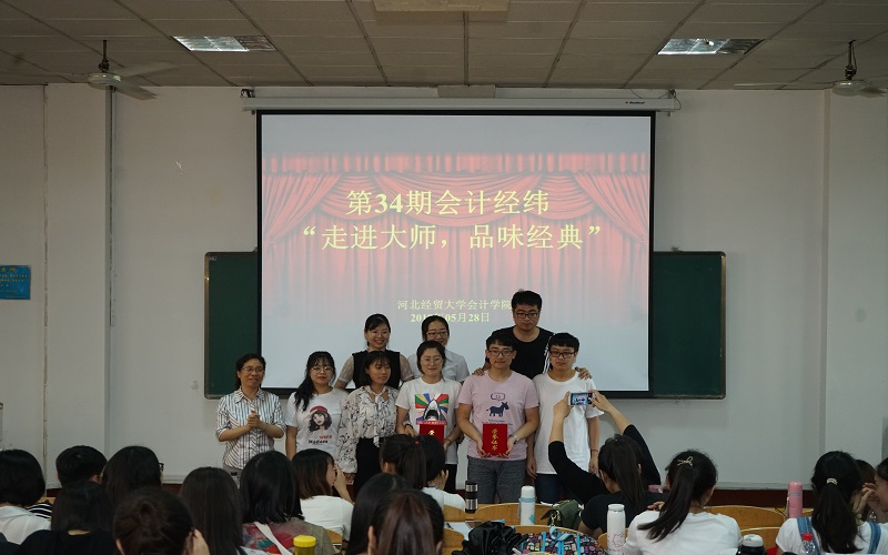 5月28日下午,yl7703永利在二教206教室举办第34期“会计经纬”活动——“走近大师,品味经典”读书竞赛。yl7703永利副经理李桂荣出席活动,硕士生导师马莉、张志英、刘敬芝和王砚书担任评委,研究生班主任及100余名研究生观摩竞赛。