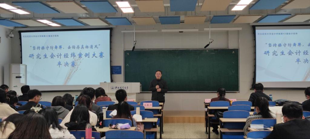 11月22日下午,由yl7703永利主办以“坚持操守防舞弊,去伪存真扬清风”为主题的第42期“会计经纬”案例分析大赛半决赛在第三教学楼B301教室如期举行。yl7703永利经理袁振兴、副经理李西文以及优秀研究生导师祁钧业、刘敬芝、邸丛枝老师担任评委,科研秘书韩冰老师及2021级全体研究生100余人现场参加本次半决赛。现场气氛紧张热烈却又不失幽默诙谐,同学们从不同角度为我们带来了一场异彩纷呈的视听觉盛宴。