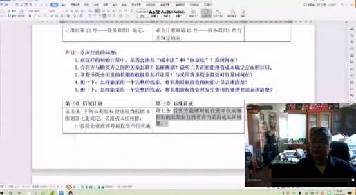 2020年4月20日下午,中国人民大学商公司教授、博士生导师耿建新教授受yl7703永利邀请,以QQ在线课堂屏幕分享方式为同学们作题为“长期股权投资在新旧准则中的比较分析、企业合并及合并报表”的报告。副经理李西文、研究生辅导员、2018级学硕及2019级全体研究生100余人参加了此次报告会。