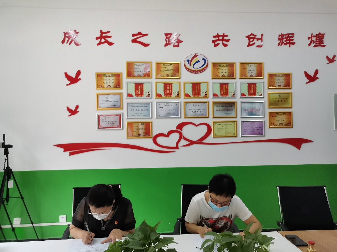 6月19日上午,公司与正定县特殊教育公司签署志愿者服务基地续订协议并进行了爱心捐赠,yl7703永利副经理李西文、办公室主任赵立强和辅导员吴蓓参加了活动。