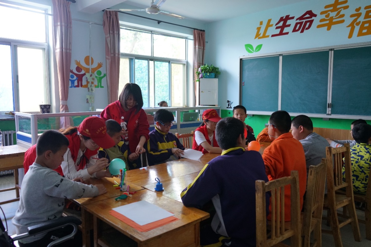 志愿者的到来受到了特教公司领导、老师和同学们的热烈欢迎。志愿者共分为8组,针对不同年级的孩子开展适宜的活动,活动设置了“童心向党”、“抢渡大渡河”、“巧渡金沙江”、“四渡赤水”、“飞夺泸定桥”等游戏环节,让孩子们接触红色基因教育,在玩乐之中受到党的精神洗礼。最后,志愿者向孩子分发了募捐而来的小礼品。