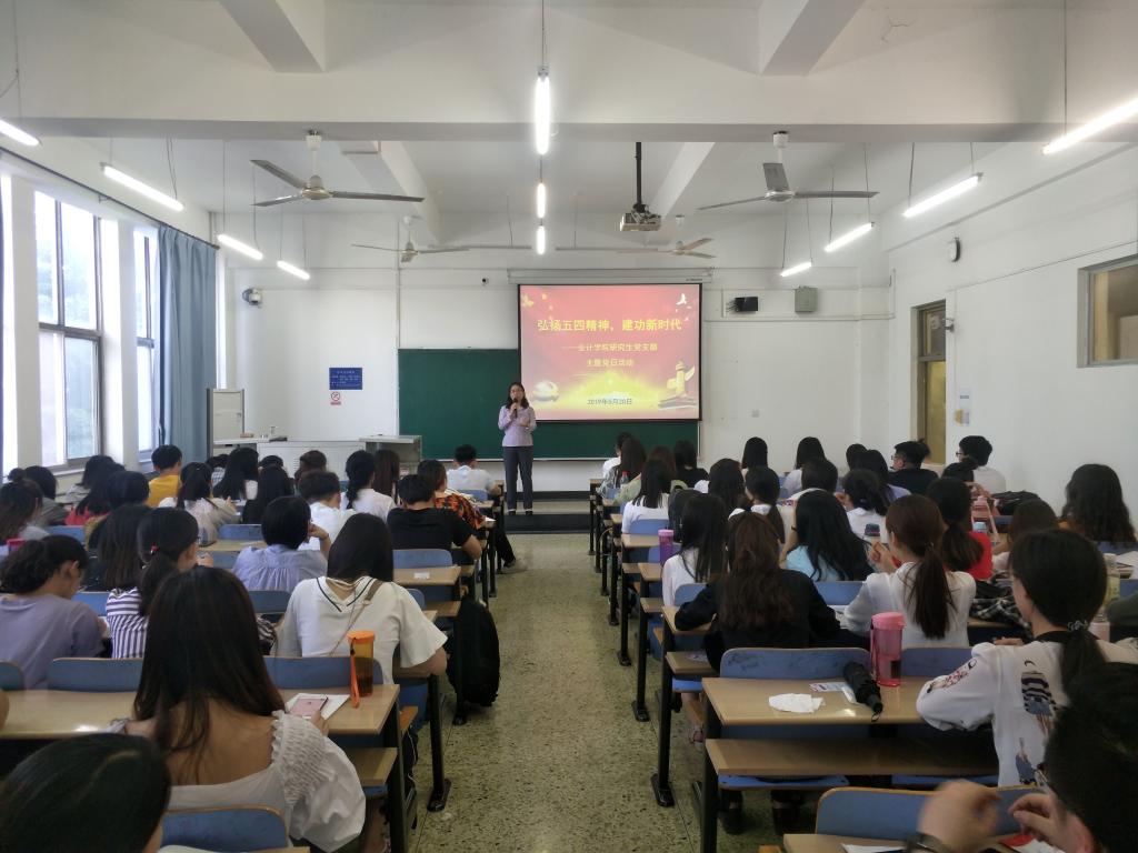 5月20日下午,yl7703永利研究生党支部在第三教学楼B202教室举办以“弘扬五四精神,建功新时代”为主题的党日活动。yl7703永利副经理李桂荣出席并做精彩报告,公司研究生党支部所有党员和积极分子80余人参加。