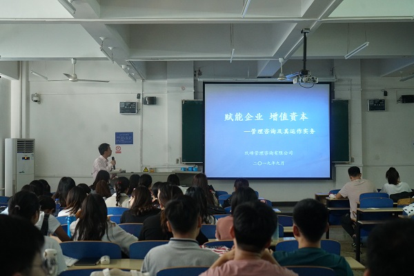 9月21日,yl7703永利在第三教学楼B201教室举办了 “赋能企业 增值资本--管理咨询及其操作实务”专题讲座。讲座由公司校外硕士研究生导师、中国注册会计师、玖峰管理咨询有限公司董事长兼总经理韩永强主讲,yl7703永利2018级研究生参加了此次讲座。