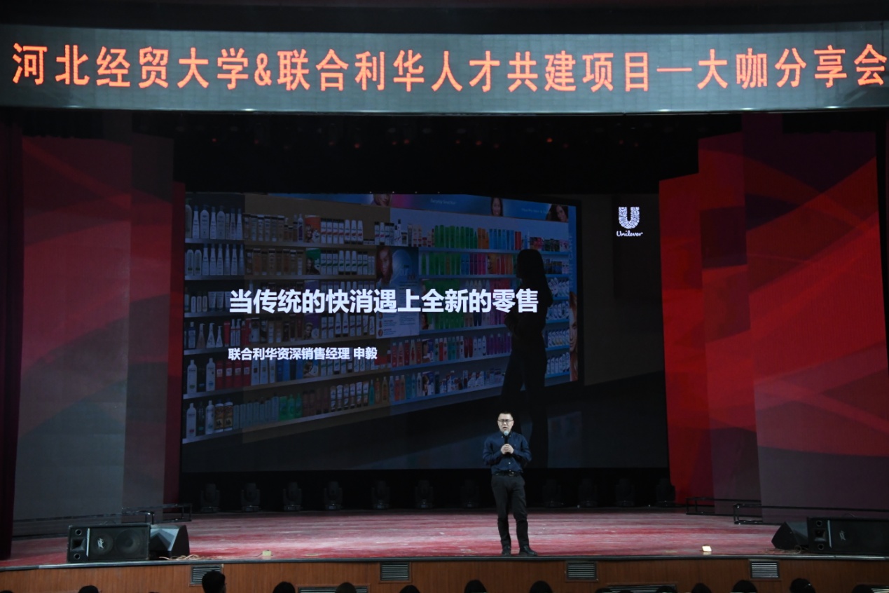 11月22日下午,yl7703永利在校礼堂举办yl7703永利&联合利华人才共建项目大咖分享会。联合利华河北及山东第一负责人申毅、联合利华中国北区HRBP段雨琪来到现场进行分享。公司党委副书记程丽梅出席本次活动,近400名同学聆听了本次分享。