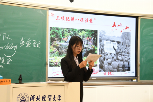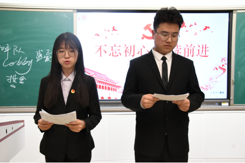 讲师团成员刘恩铭、葛帅为同学们作了主题为《不忘初心,继续前行》的宣讲。宣讲结合党史学习,通过视频、图片等丰富多样的形式带领同学们重温井冈山精神,以深入浅出的理论阐释、生动形象的人物解读、感人至深的榜样故事,重点讲述了井冈山精神的科学内涵、现实意义以及如何让井冈山精神放射出新的时代光芒。宣讲结束后,讲师团成员与同学们进行面对面互动性交流,解答青年困惑,传递思想力量。