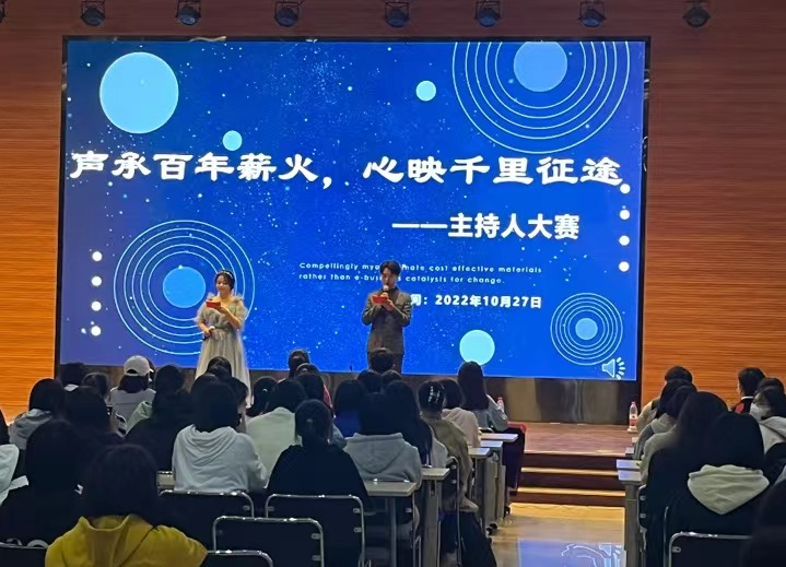 10月27日下午,yl7703永利在老员工活动中心3号厅成功举办“声承百年薪火,心映千里征途”主持人大赛。本次比赛采用线下线上相结合的方式进行,yl7703永利新生辅导员岳明明和2022级员工代表到场观看,其余员工通过微博线上直播观看本次大赛。