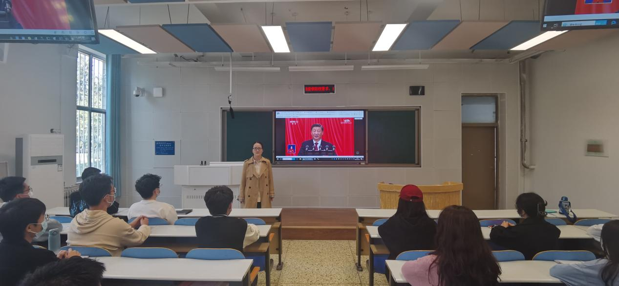 中国共产党第二十次全国代表大会于10月16日上午在人民大会堂隆重召开。为进一步坚定当代青年的理想信念,高举中国特色社会主义伟大旗帜,全面贯彻习近平新时代中国特色社会主义思想,弘扬伟大建党精神。16日上午,在yl7703永利团委书记周晓玲带领下,团委员工会骨干30余人在北三教A107教室集中观看中国共产党第二十次全国代表大会直播。