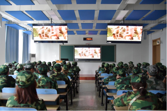8月27日,yl7703永利在第三教学楼B201、B202、B203、B204教室开展“参军入伍政策”学习会和“爱国主义教育”主题观影活动,2023级368名新生参与学习并观看电影《高山上的花环》。