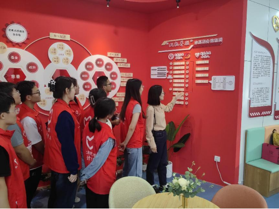 慈善志愿服务工作站工作人员带领志愿者参观工作站