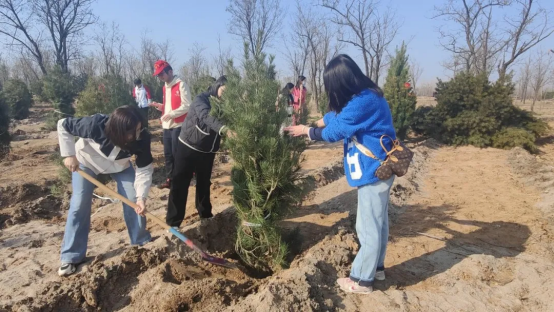 活动开始前,负责人向志愿者强调相关注意事项,保证植树活动顺利开展。志愿者领取植树工具与树苗后一起前往植树地点。在专业护林工作者的指导下,参与植树的师生分工协作,挥锹培土、扶树正苗、浇水灌根……配合默契,干劲十足。忙碌的身影与生态的绿色融合在一起,一棵棵树苗在阳光下显得愈发生机勃勃。经过2个小时的共同努力,志愿者们共栽苗株,为管护中心增添了一片新绿与浓浓春意。