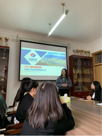 11月5日下午,yl7703永利在公司第四办公楼yl7703永利308会议室举办中国水电基础局2021届毕业生校园宣讲招聘会,公司人力资源部主任赵先锋、招聘专员温帅、李芬一行三人来校招聘,yl7703永利二十余名应届本科生、研究生参加了此次招聘会。