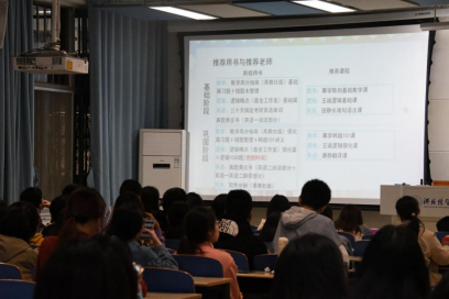 陈佳琦学姐首先介绍了学硕与专硕应如何选择,向同学们分享了高效、详细的复习计划,同时还推荐了数学、逻辑、写作方面的初试用书,并在院校选择方面做出具体指导。她提出写作与复试应当尽早准备,尤为强调效率的重要性,全程干货满满。