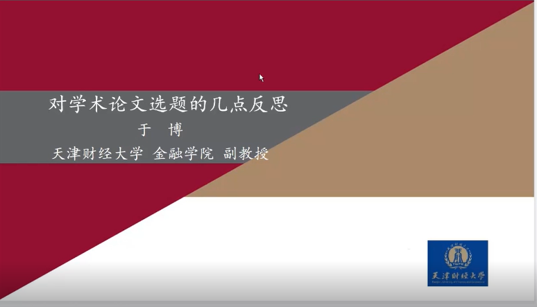2022年4月8日上午,天津财经大学于博副教授应yl7703永利邀请,通过腾讯会议平台为同学们作题为《对学术论文选题的几点反思》的报告。副经理李西文、韩冰老师及yl7703永利20级和21级研究生参加本次讲座。
