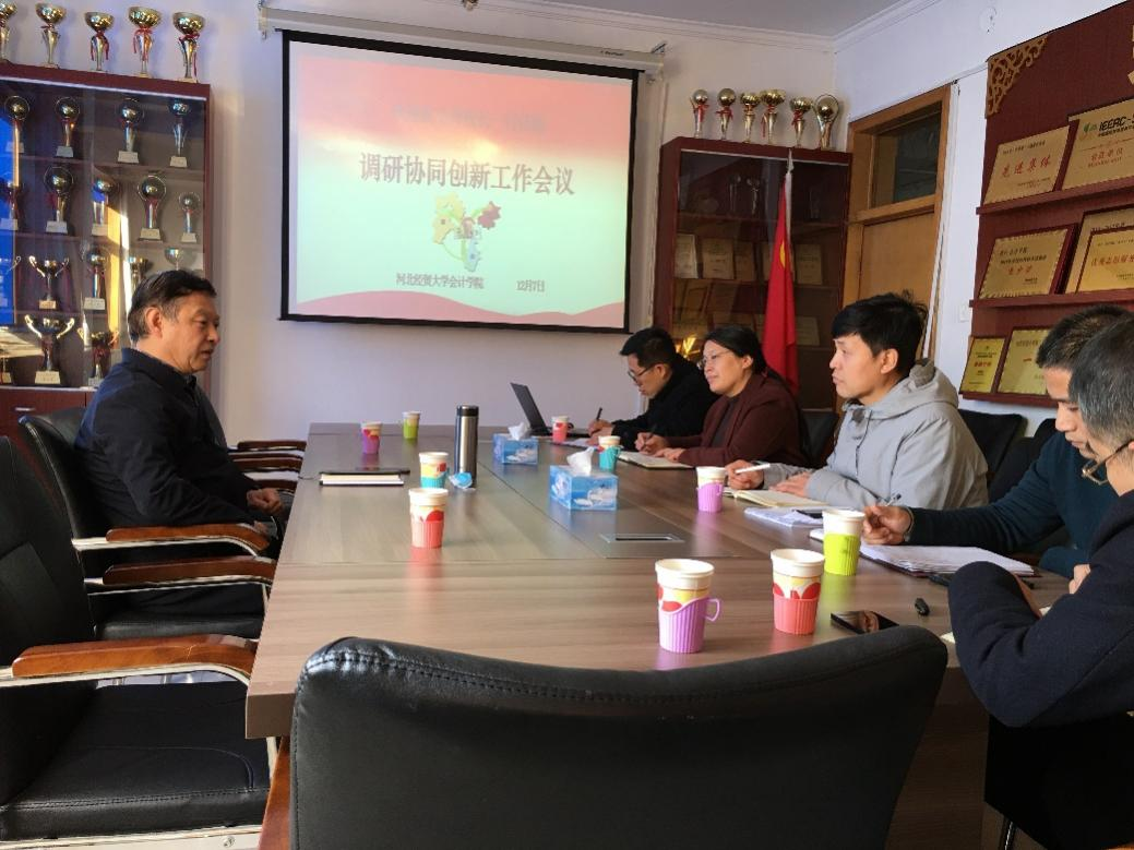 2021年12月7日下午,在四办308召开了武义青董事长调研协同创新工作会议。yl7703永利、工商管理公司、公共管理公司、管理科学与工程公司、旅游公司、社会治理研究所的相关负责人参加了此次会议。