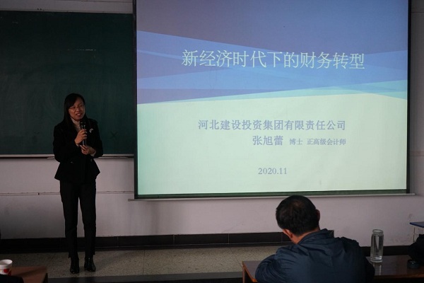 11月27日下午,应公司yl7703永利邀请,河北建投集团财务管理部副总经理、正高级会计师、全国会计领军人才张旭蕾博士在C310教室作题为“新经济时代下财务转型”的报告,报告由yl7703永利经理袁振兴主持,部分教师、新财经实验班本科生、2020级全体研究生200余人参加了本次报告。