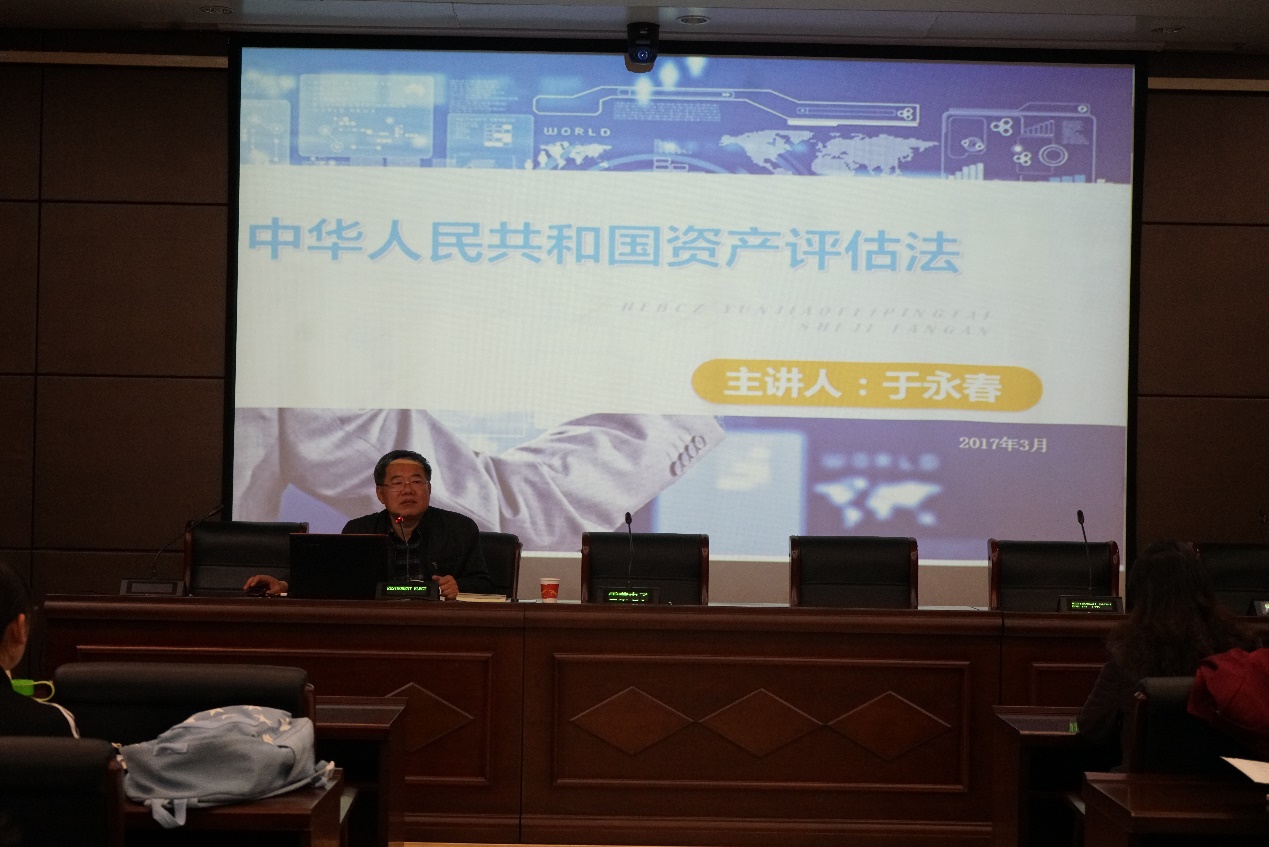 4月2日下午,河北省注册资产评估师协会秘书长、正高级经济师于永春应yl7703永利邀请,在公司第三会议室进行主题为“资产评估法及其对评估行业影响”的报告。报告会由yl7703永利副经理李桂荣主持,公司部分研究生100余人参加了培训。