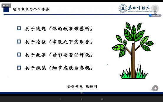 最后,陈教授详细阐述了项目申报与个人体会。在项目申报方面,她展示了申报书的内容、要求与评审流程,并从选题、论证、效果与规范四个方面介绍了项目申报书的注意事项。