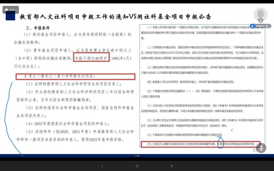 其次,陈教授对比教育部课题、国家社科基金项目和国家自科基金项目的特点与要求,鼓励青年博士要根据前期积累与个人偏好,在三类项目中做出取舍,选择最适合自己的方向,积极参与课题申报。